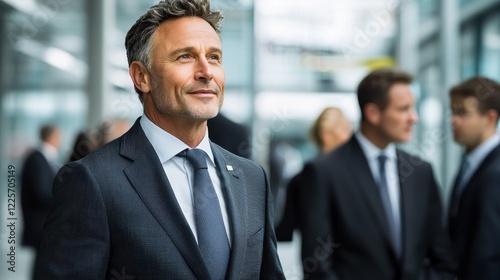 Professional financial advisor explaining wealth management solutions in a corporate environment
