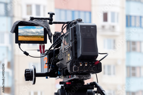 Professional video camera on a city street