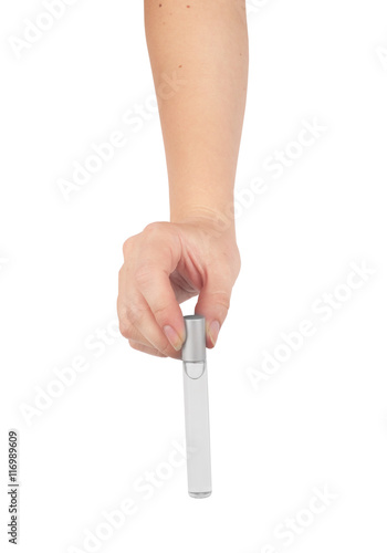 Professionnal make-up brush cosmetic, in female, hand beautician isolated on, white backgroundv