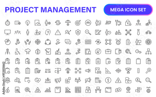 Project Management web icons in line style. Outline icon collection related to Schedule, human resource, management, development, planning, and more.