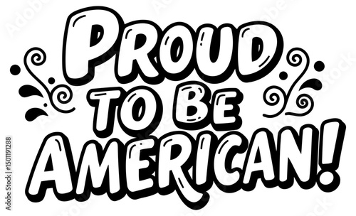 Proud American statement graphic design. Typography with decorative elements on a white background. Patriotic graphic design for commercial use. general audience.