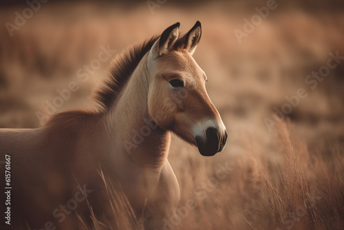Przewalski's Horses in the Temperate Grasslands. Generative AI