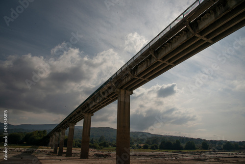 Puente fronterizo visto por debajo, al haber sido vaciada la presa