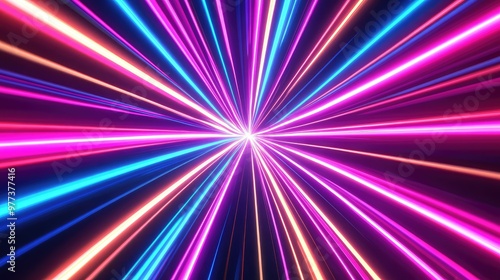 Pulsing radial lines stretching outward, forming a starburst pattern of neon light.