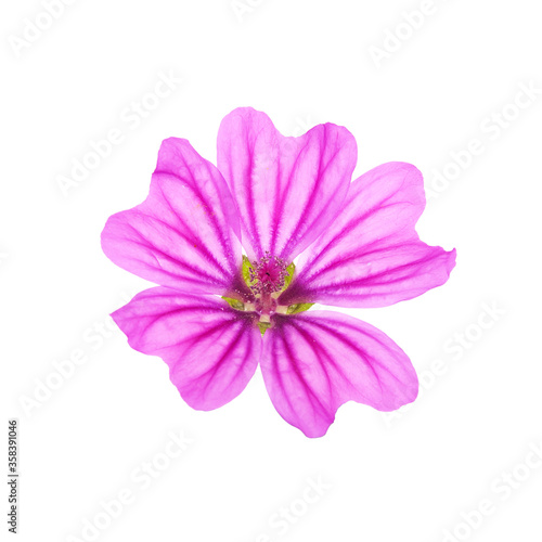 Purple pink flower of mallow isolated on white, Malva sylvestris