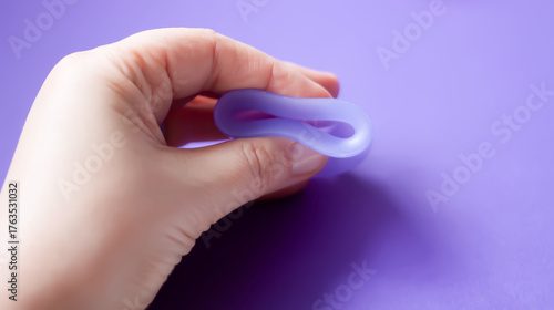 Purple silicone menstrual cup held gently in a woman's hand. A modern symbol of hygiene and eco awareness.