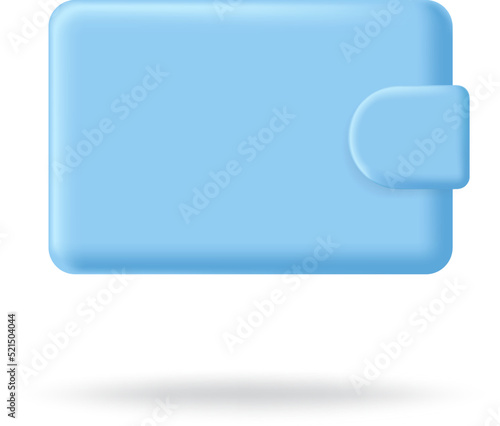 Purse money wallet 3d icon. Creative financial blue wallet isolated on white. Vector pocket illustration