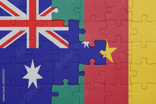 puzzle with the colourful national flag of cameroon and flag of australia.