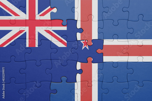 puzzle with the colourful national flag of iceland and flag of new zealand.