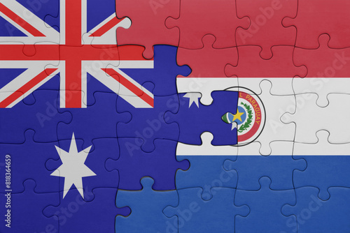 puzzle with the colourful national flag of paraguay and flag of australia.