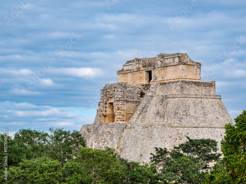 Pyramid of the Fortune-teller or Pyramid of the Magician, elevated view, Uxmal, Yucatan State, Mexico