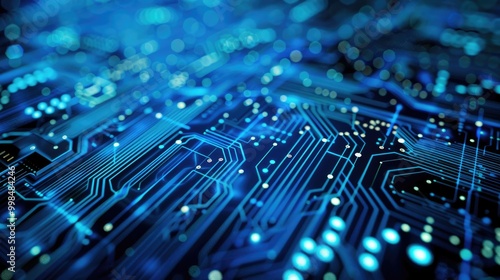 Quantum computer technologies concept. Futuristic blue circuit board background