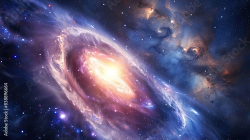 Quasar illuminating the surrounding space with intense light, cosmic phenomenon