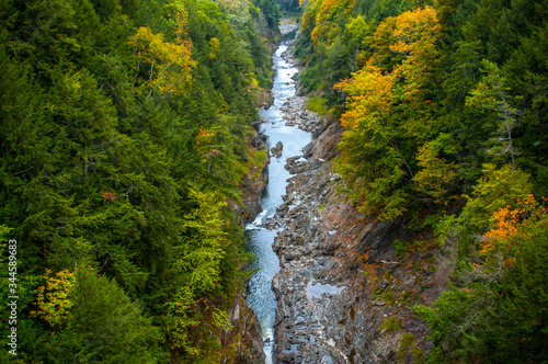 Quechee Gorge Vermont aerial shot drone forest river rocks