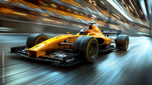 Race Car Speeds Through City Tunnel with Blurry Lights