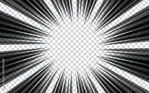Radial manga comic background. speed lines with pop art halftone texture. Anime cartoon ray burst background for poster, banner, magazine, cover. Vector illustration