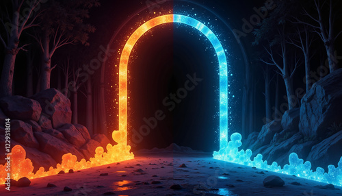 Radiant archway leading into darkness, surreal illumination