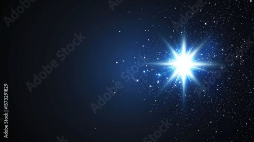 Radiant blue star shines brightly in dark galaxy, surrounded by countless smaller stars and cosmic dust, creating mesmerizing celestial scene
