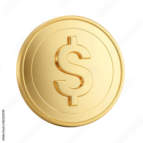 Radiant golden dollar coin shimmering against a pristine isolated expanse, embodying financial