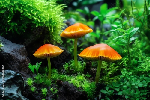Radiant Orange Mushrooms Amidst Lush Greenery