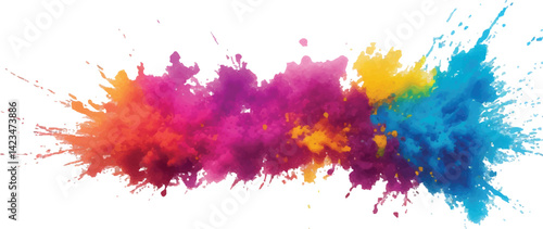 "Radiant Watercolor Strokes: Bold, Vibrant Splashes of Color in an Abstract, Rainbow-inspired Pattern on a Clean White Canvas – A Modern Artistic Element in Aquarelle Style"