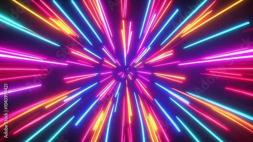 Radiating Neon Light Burst, futuristic flashes, Motion lights, Colorful Streaks on Dark Background