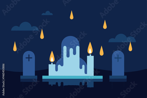 rain drenched graveyard with flickering candles