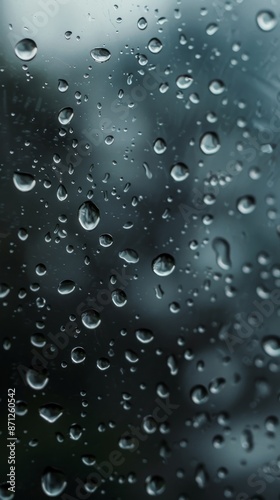 Rain droplets on glass window with blurred background