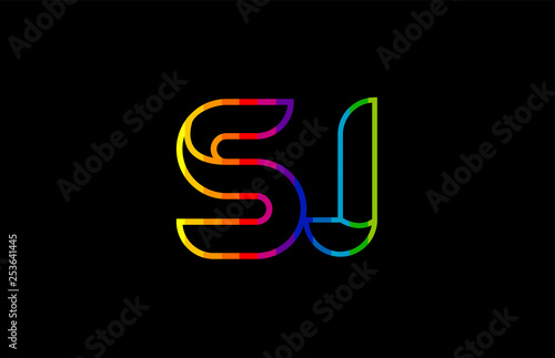 rainbow color colored colorful alphabet letter sj s j logo combination