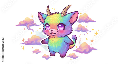 Rainbow Fluffy Goat in Pastel Clouds Pixel Art