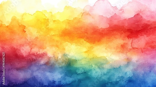 Rainbow rendered in watercolor style, capturing the fluid blend of colors and gentle transitions in a soft, ethereal manner.