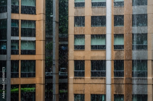 Rainy Day View of City Buildings