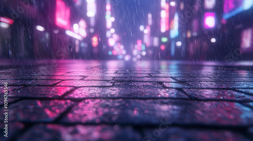 Rainy Night Cityscape with Neon Lights