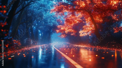 Rainy Night Road, Autumn Glow