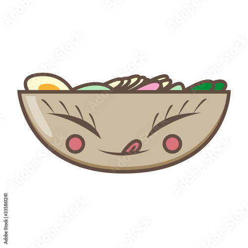 ramen soup beef egg greens food. Kawaii illustration.