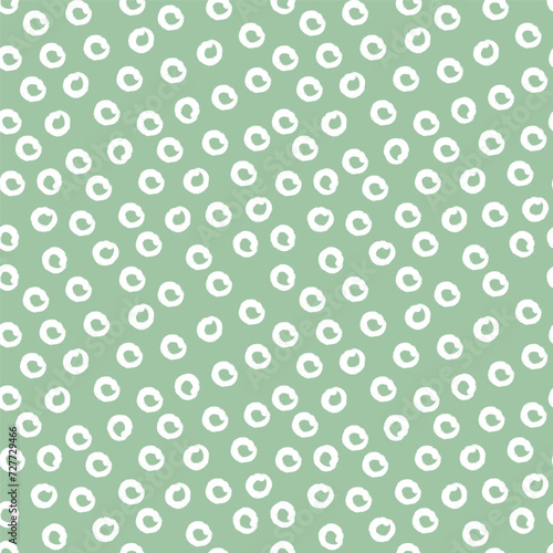 Random circle spots, abstract minimalistic retro background. Seamless vector pattern with rounded stains. Monochrome simple green vector illustration.