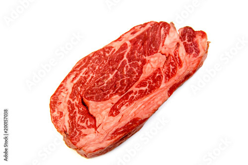 Raw marbled beef, Chuck roll steak on white background.