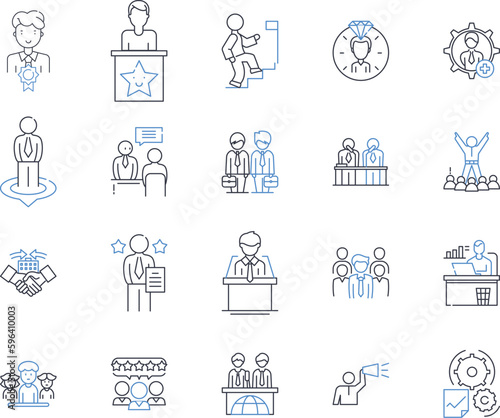 Real property tech line icons collection. PropTech, Automation, Blockchain, Augmented Reality, Machine Learning, Data Analytics, Surveying vector and linear illustration. Property Generative AI