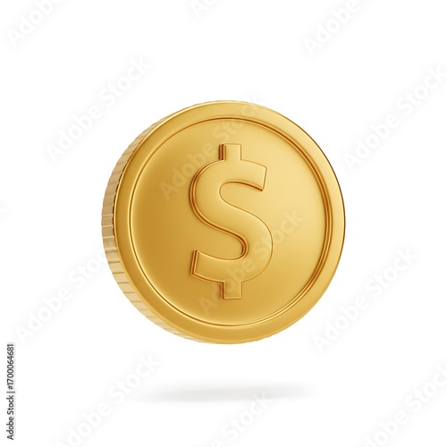 Realistic 3D Golden Coin with Dollar Symbol in a Realistic 3D Rendering