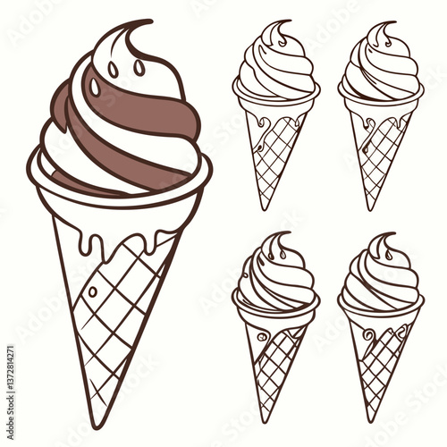 Realistic 3D Ice Cream Cone with Swirled Vanilla and Chocolate Topping