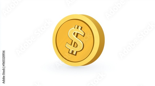 Realistic 3D Render of a Gold Coin with Dollar Sign, Symbolizing Wealth, Finance, and Investment, Ideal for Economic and Business Illustrations