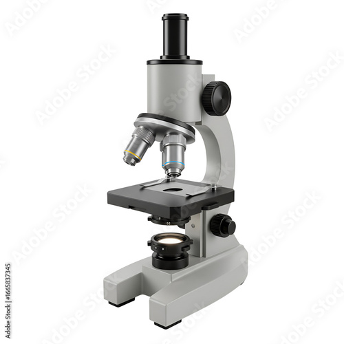 Realistic 3D Render of Isolated Microscope on Transparent Background