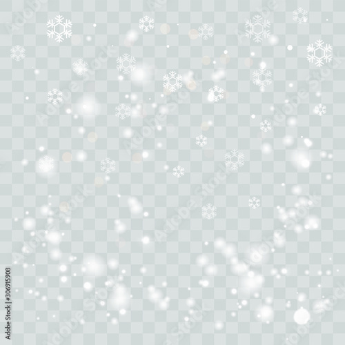 Realistic falling snow on a transparent background. texture, snowflakes fall, transparent background.