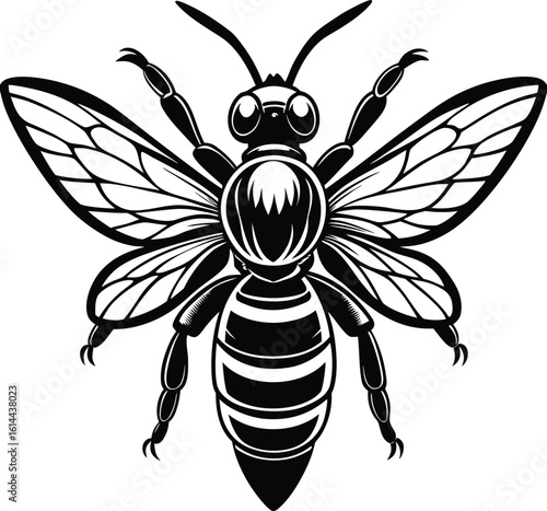 Realistic flying bee vector with transparent wings and body texture
