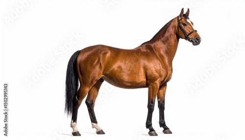 Realistic Horse Standing on White Background with Soft Studio Shadow