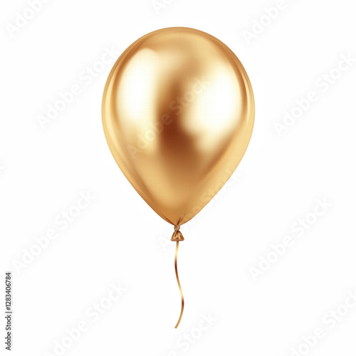 Realistic illustration of a gold helium balloon with a glossy metallic finish and soft reflections, isolated on transparent background.