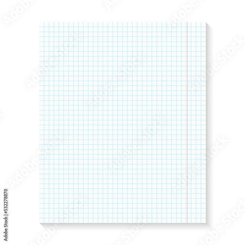 Realistic illustration of blank notebook sheet of square paper. White squared paper sheet background. Stock royalty free illustration