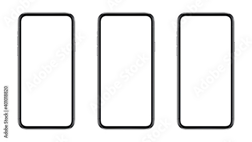 Realistic models smartphone with transparent screens. Smartphone mockup collection, with blank white screen for Infographic Global Business web site design app. Concept technology Smartphone.