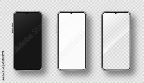 Realistic smartphone mockup set. Cellphone frame with blank display. Isolated vector illustration