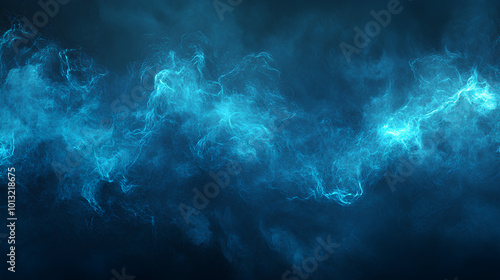 Realistic thunder light and blue smoke cloud bottom frame. Mysterious lightning glow border wide panoramic element